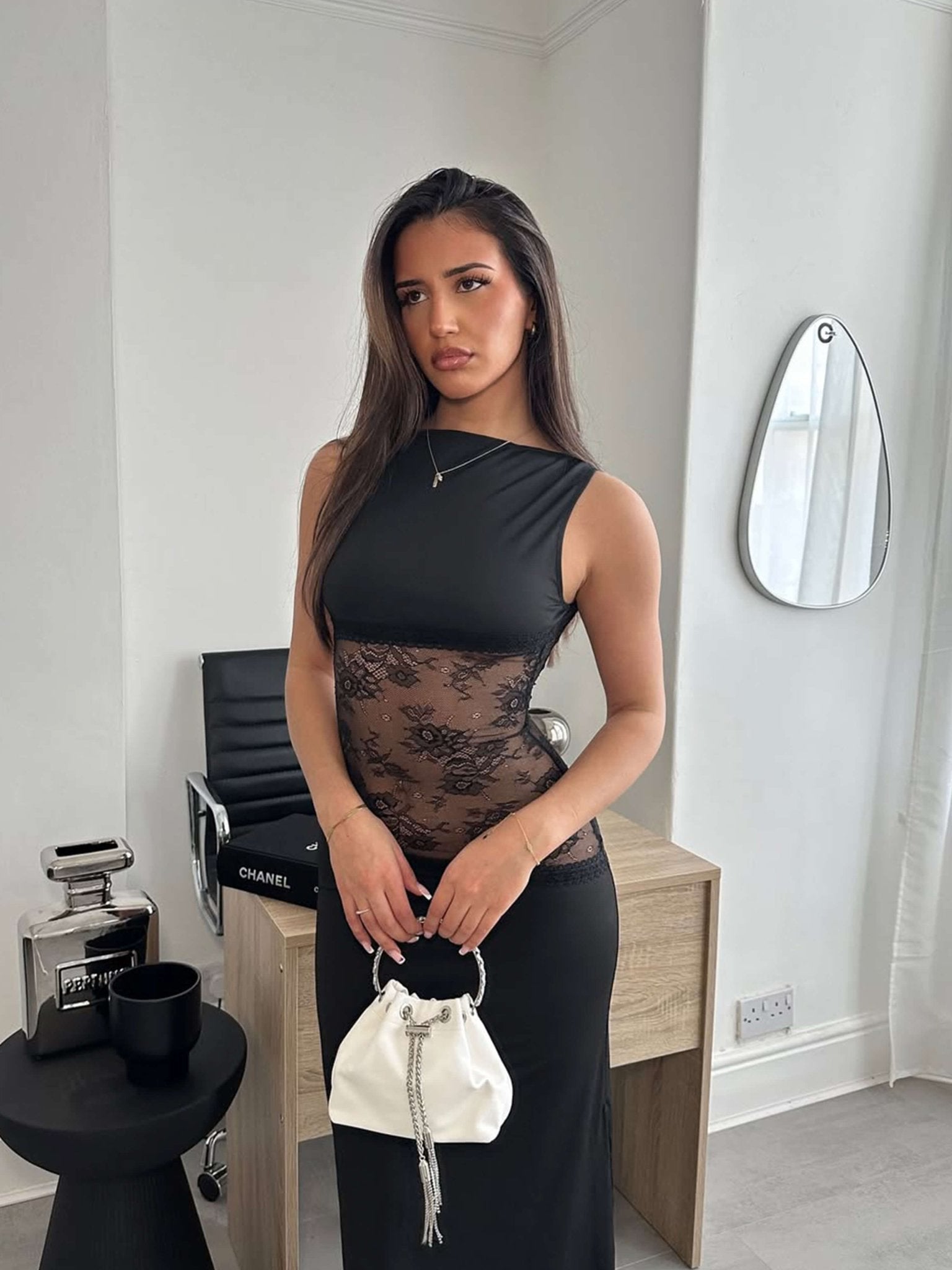 The Nieve Maxi Dress with Lace Details exudes timeless elegance with a touch of romance. Featuring a flowing silhouette and intricate lace accents, this dress is perfect for dreamy summer days, garden parties, or special occasions. Lightweight and graceful, it moves beautifully with every step, making you feel effortlessly enchanting.